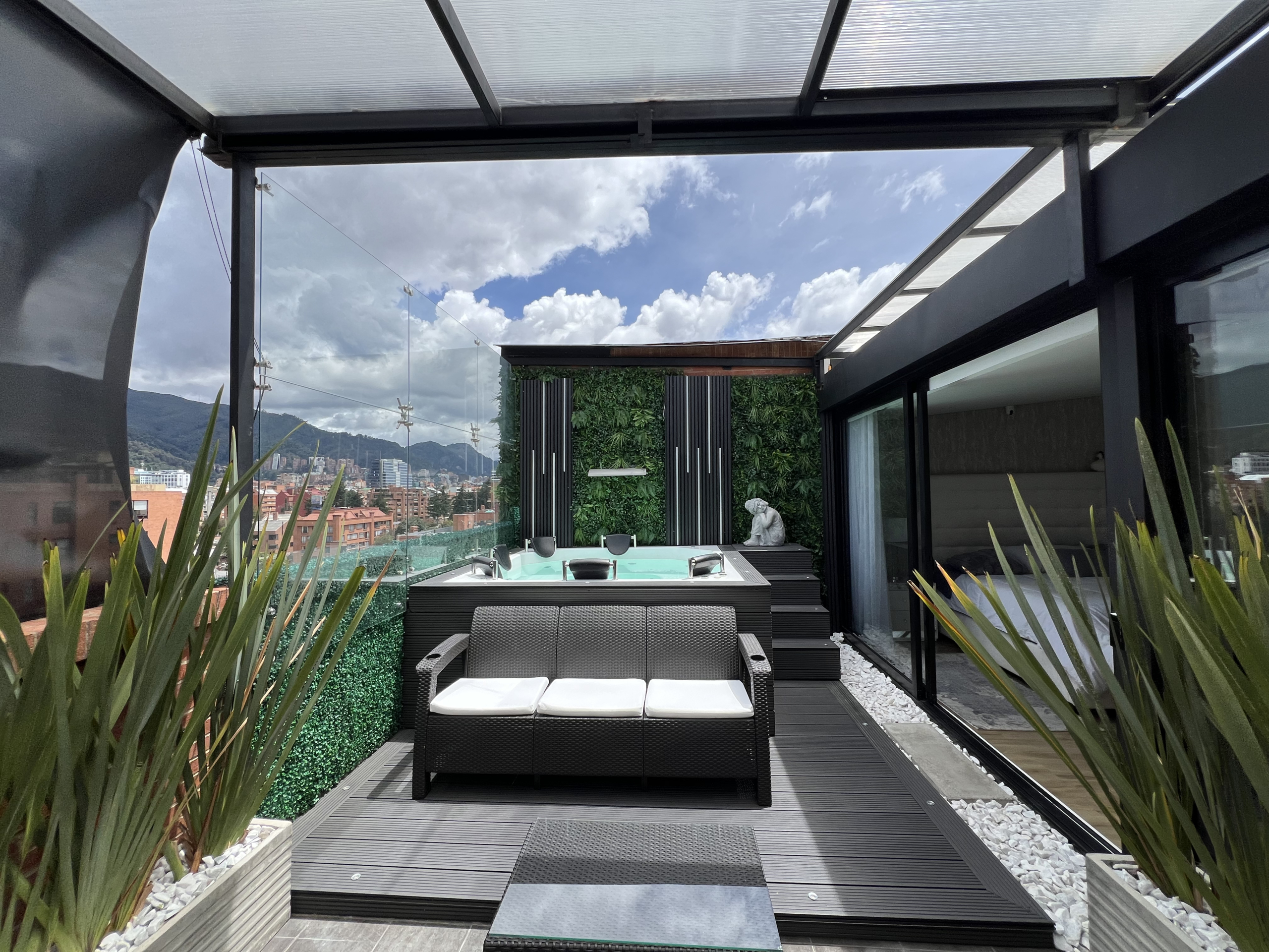 • Terraza privada con jacuzzi y pérgolas retráctiles